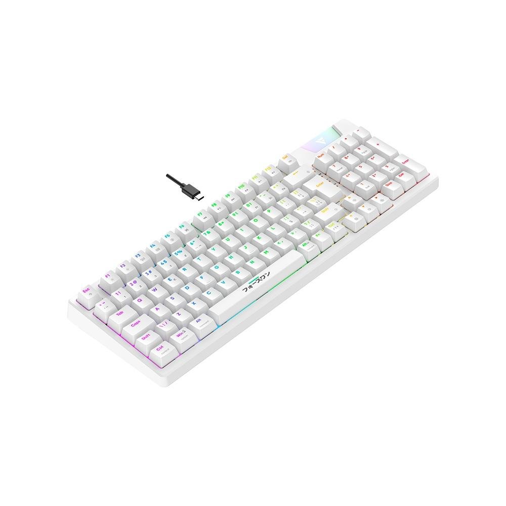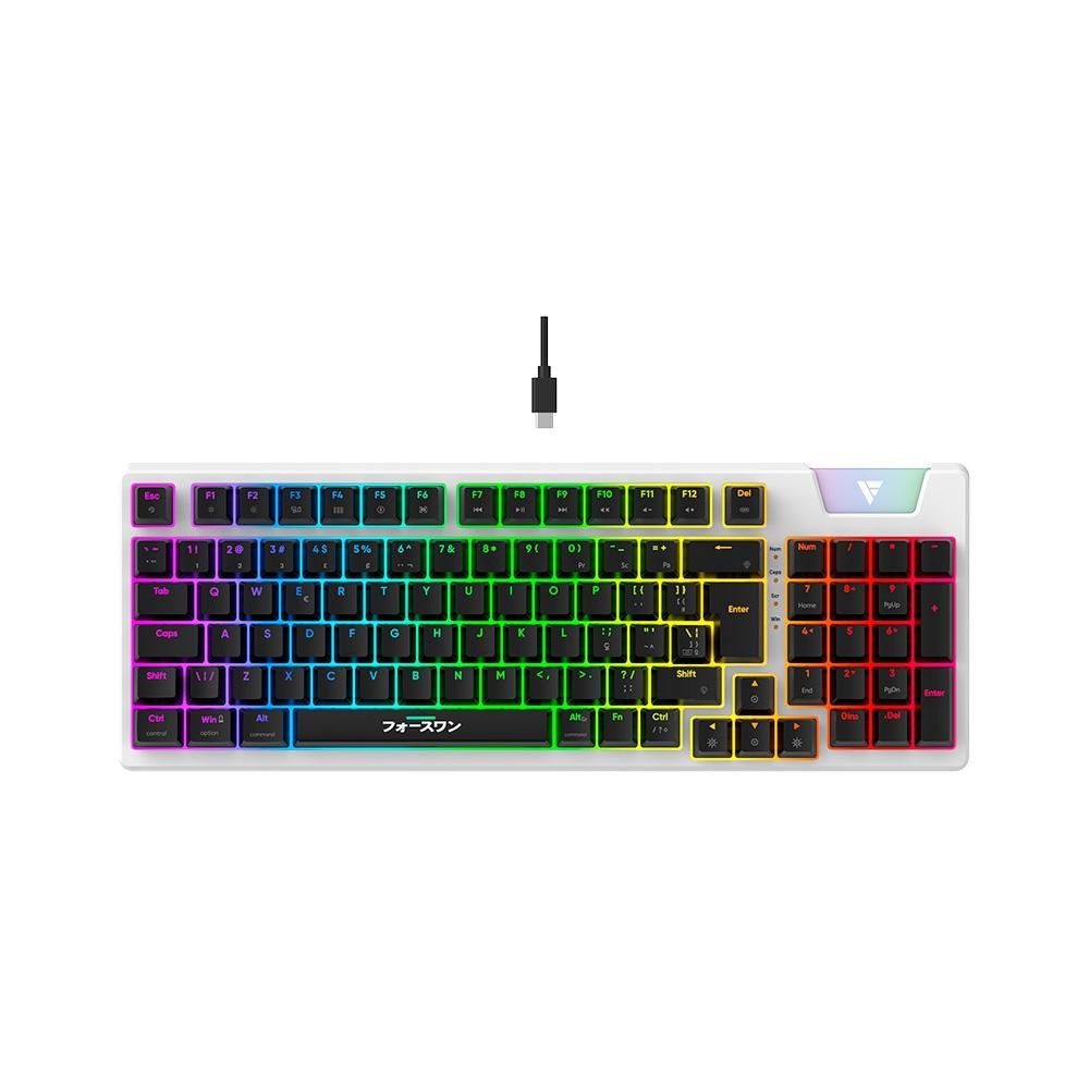 Teclado Mecanico Gamer Force One Yari, RGB, Switchs Gateron Amarelo, Keycap Personalizável, Hotswap, Cabo Removível, Branco - FR.TC.YA.01