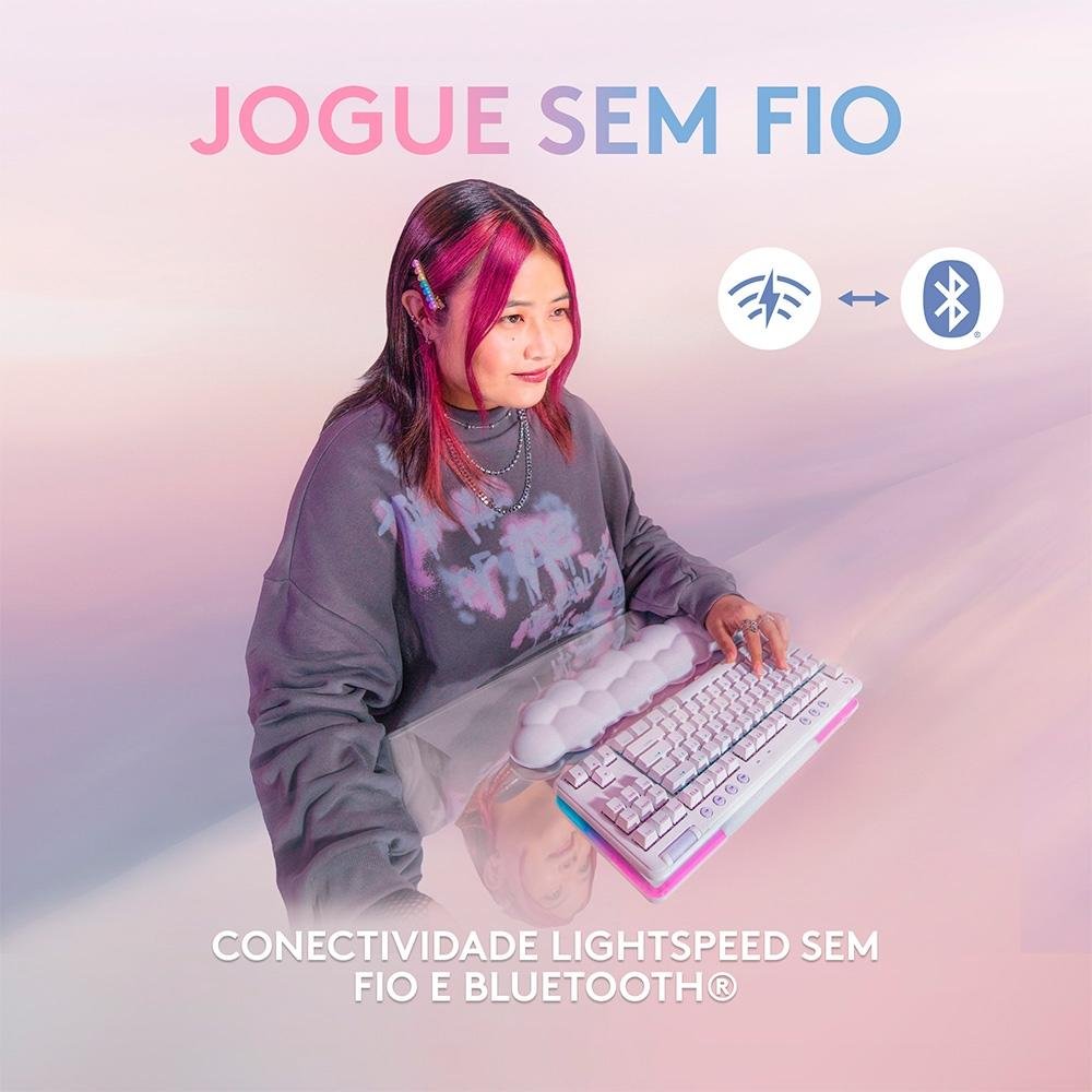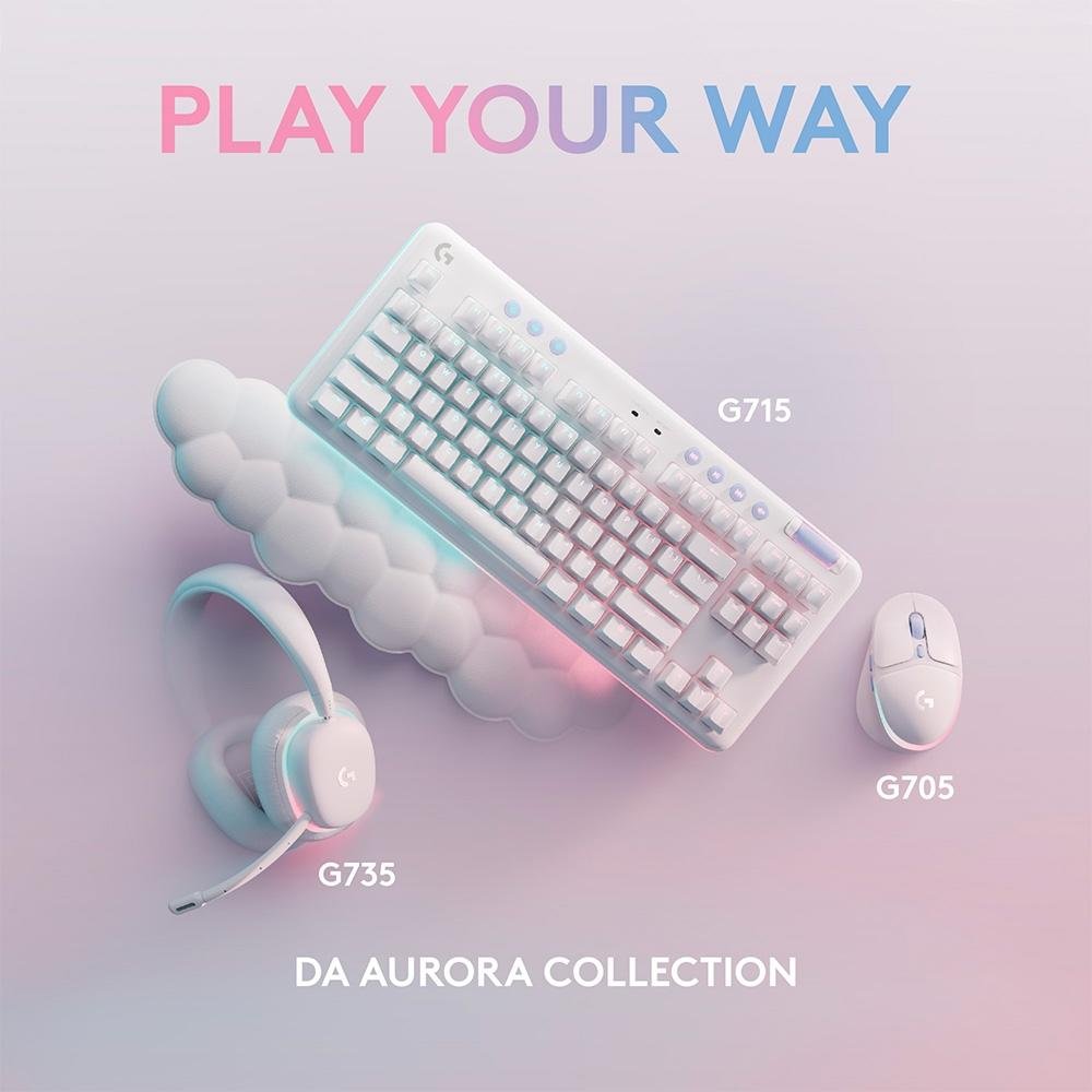 O design branco do G715; o apoio de mãos em formato de nuvem; o layout compacto do teclado mecânico TKL e a altura ajustável são a combinação perfeita para os seus melhores jogos