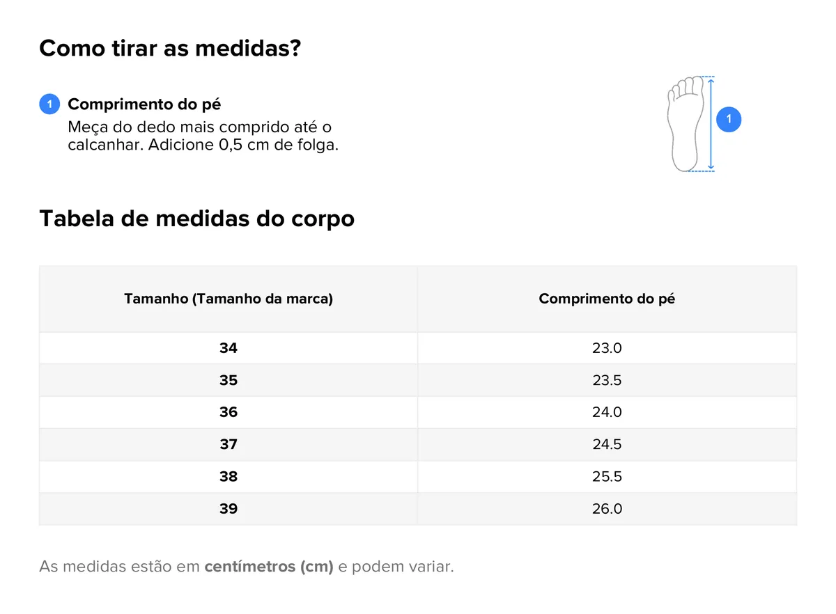 Tamanho: 34 ao 39