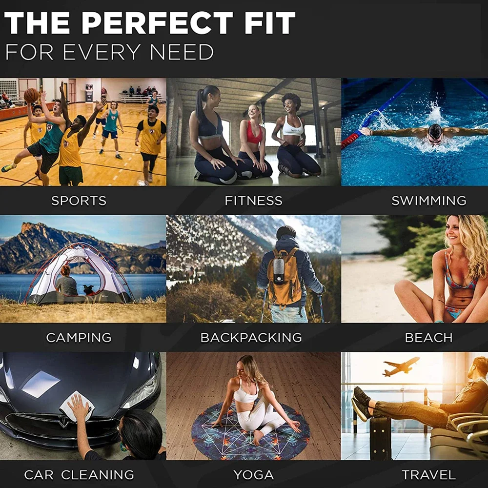 Toalha de microfibra para esportes e atividades ao ar livre, ultra absorvente, compacta e de secagem rápida