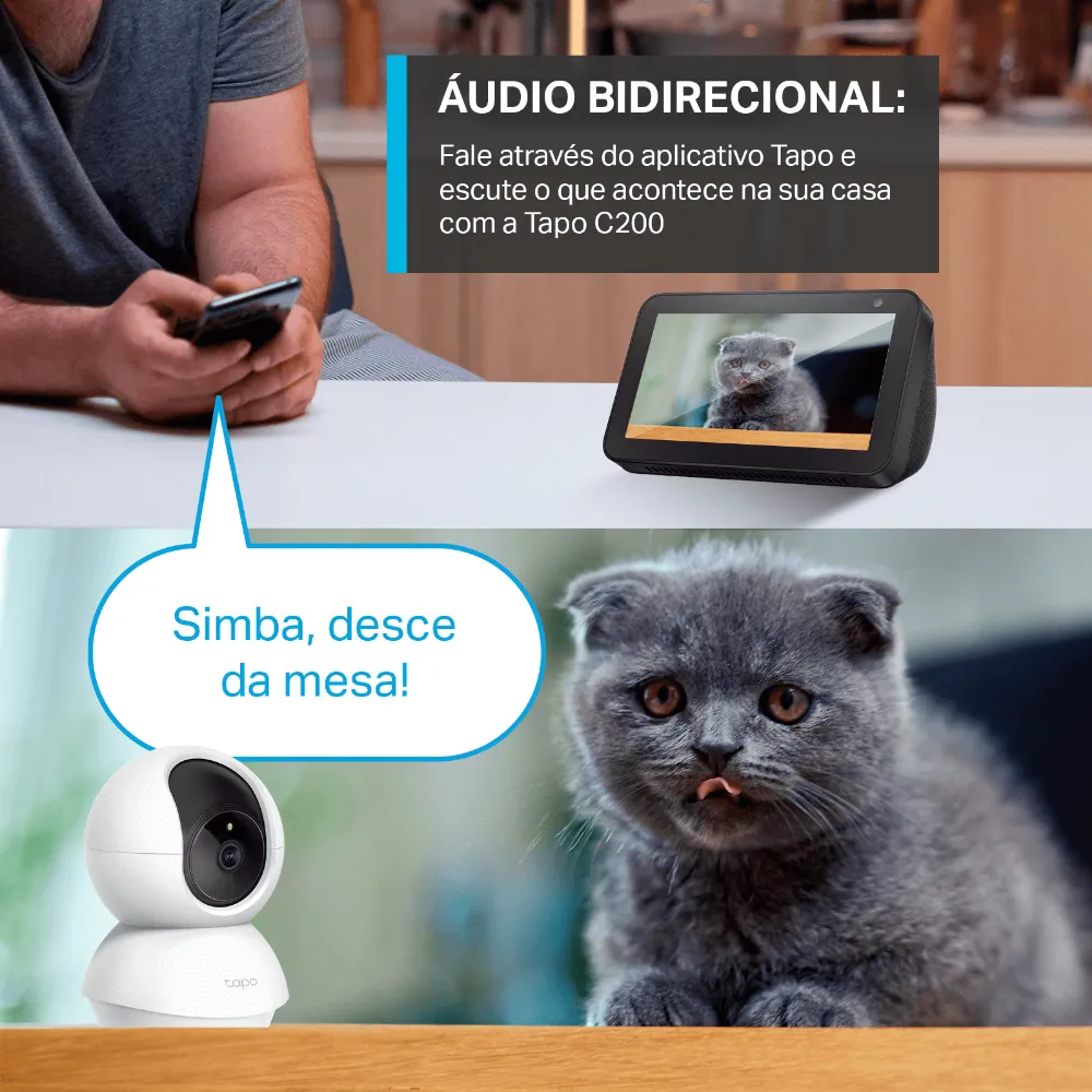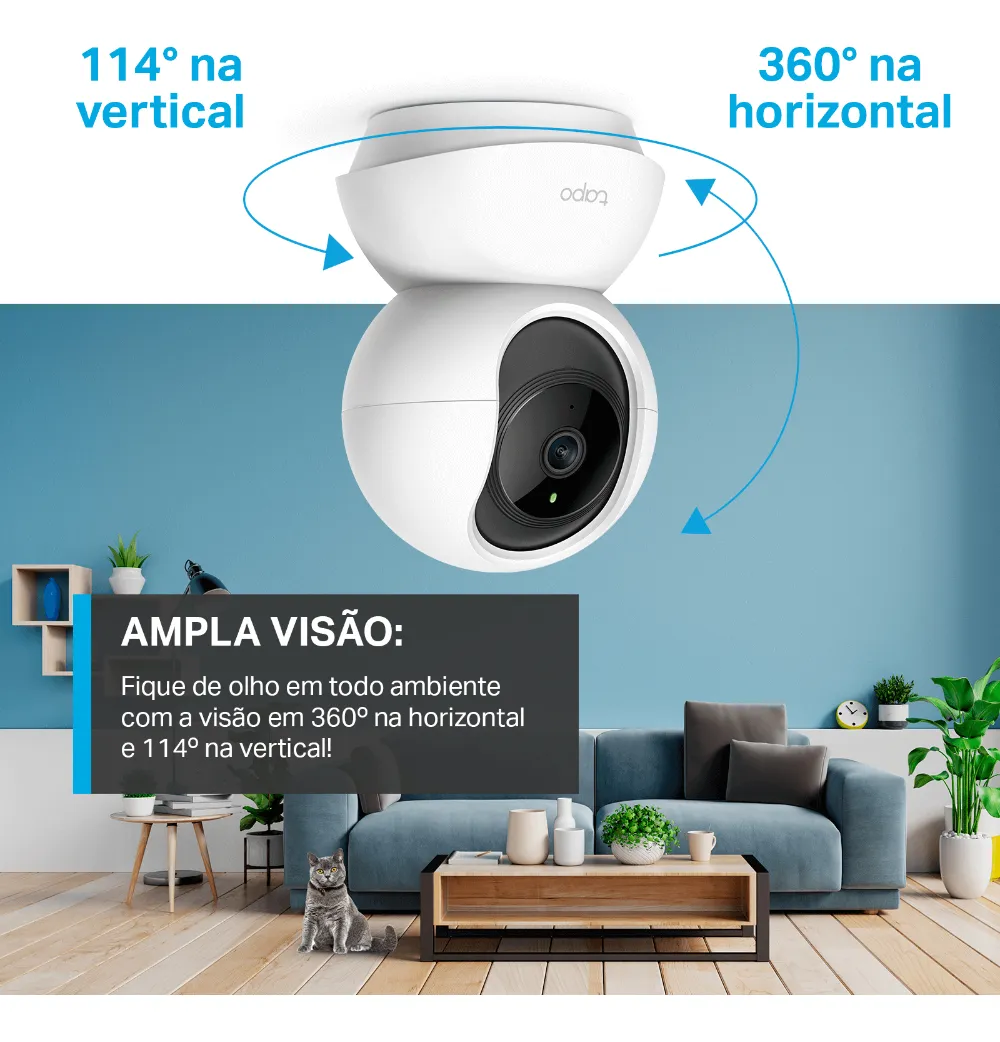 Conheça a Tapo C200 V1 da Tp-Link, a câmera de monitoramento com resolução Full HD e visão de 360º na horizontal e 114º na vertical, ideal para qualquer ambiente.
