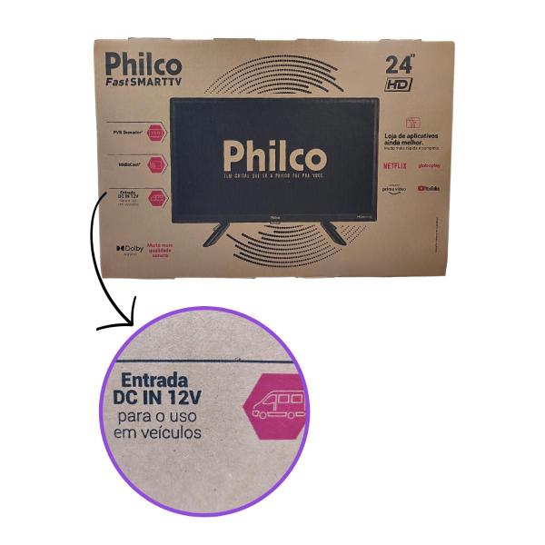 TV Philco Smart 24 Polegadas Roku LED HD 12V Nativa Para Caminhão HDMI USB WiFi 110V 220V Carreta Trailer Van Caminhoneiro Motor Home