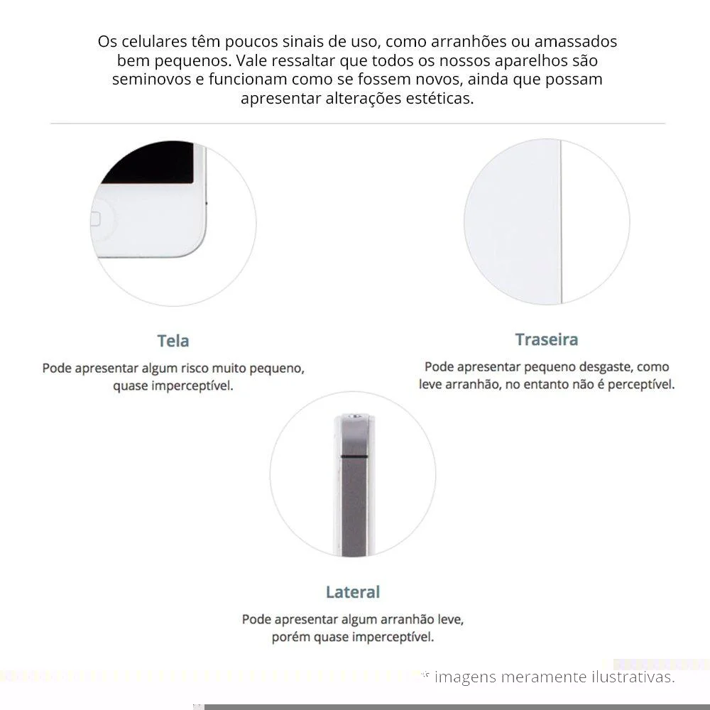 trabalhamos com três estados de conservação, em todas as condições o aparelho está 100% funcional, o que avaliamos é apenas a aparência externa: