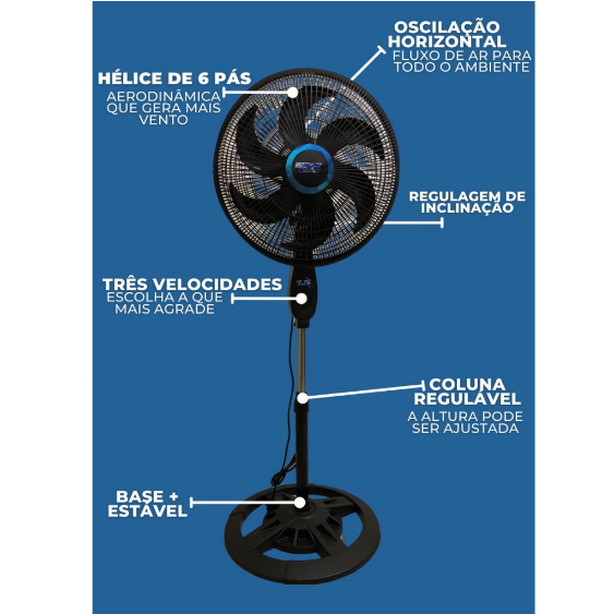 - Design moderno e arrojado: Maior estabilidade para o ventilador.