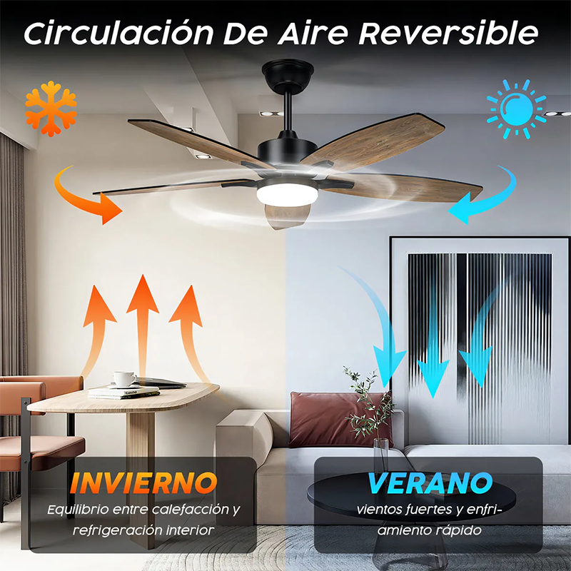Ventilador de Teto com Luz LED 42In 6 Velocidades Silencioso com Controle Remoto