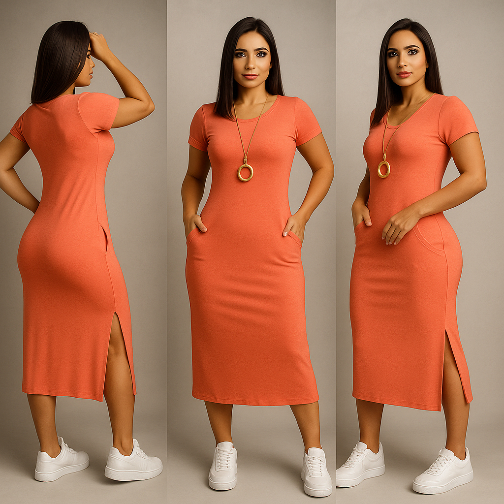 ✨ Vestido Midi com Fenda Lateral e Bolsos ✨