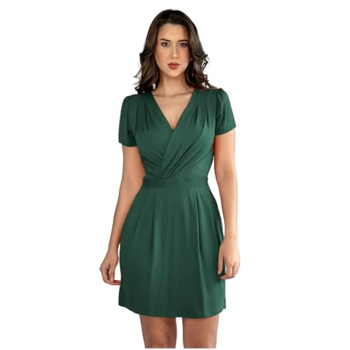 Vestido Curto Decote Transpassado Envelope Soltinho Acinturado Manga Curta Casual Elegante