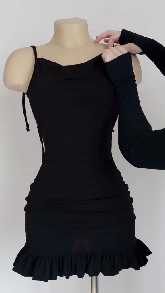 Vestido Curto Suplex Premium Ajustável Na Alça Com Babado Modela Super Bem No Corpo Com Elevação de BumBum ( Gabriela )