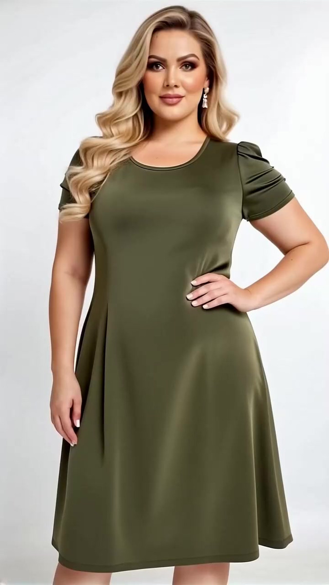 - Vestido de manga manguinha liso soltinho leve mid plus size