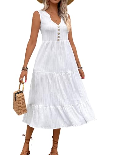 Design: Vestido feminino elegante com babado na bainha lisa, sem mangas e evasê. Vestido casual de verão com colarinho de comprimento médio. Para qualquer ocasião: vestido de camisa elegante feminino. Vida diária, semiformal, uso para o trabalho, escritório, reunião de família, casual, igreja, brunch, jantar, presentes de aniversário, viagens, férias, festa de casamento, uma peça, praia, férias, namoro, formatura, dança escolar. Características: botões frontais, sem mangas, decote em V, vestidos justos e flare para mulheres, este vestido de estilo casual é generoso e elegante, dando a você um visual elegante e elegante. O design moderno simples pode ser usado em muitas ocasiões, dependendo do seu acessório. e. e muitos elogios. Ocasiões: vestidos de convidada de casamento para mulheres, cor lisa simples e estilo slim fit sublinham o toque casual mas clássico e nunca sai de moda. Este vestido foi feito bem por seu design simples, vestido sexy e bonito, ajuste ótimo e é muito atraente. Você pode combiná-lo com belas joias e bolsas elegantes e saltos fofos podem ser usados por um vestido caro.