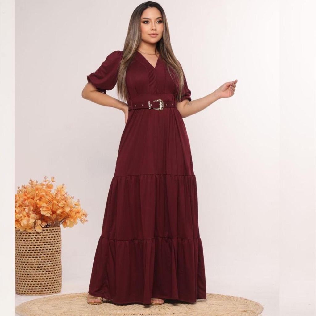 VESTIDO LONGO TRÊS MARIAS COM CINTO PERSONALIZADO ✨