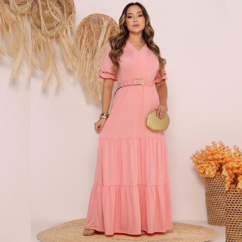 Vestido Feminino Longo Evangélico Três Marias Com Cinto Personalizado Confortavél e Elegante Tedência