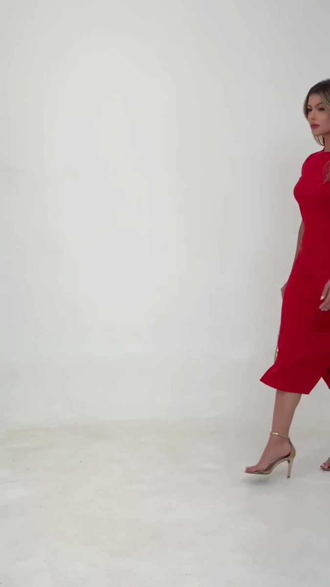 O vestido midi que une conforto e caimento impecável: perfeito para trabalho, passeios, compromissos e qualquer ocasião. Modelagem ajustada que valoriza as curvas, tecido canelado com elasticidade inteligente e fendas laterais que garantem mobilidade e modernidade.