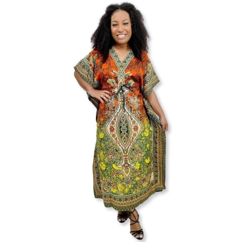 Vestido Kaftan Longo Estampa Indiana Tie Dye Plus Size