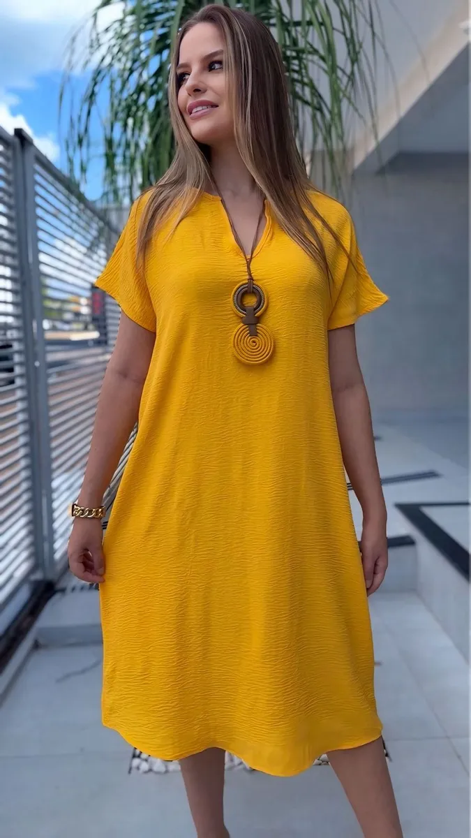 Vestido Larguinho Soltinho Mide Longuete Com Manga Rodado