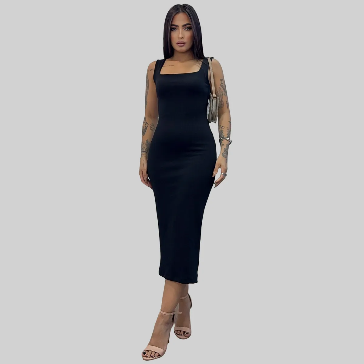 Confeccionado em malha com toque de algodão, o vestido oferece uma sensação agradável ao toque e liberdade de movimento. A fenda adiciona um detalhe sexy e moderno, tornando-o uma peça versátil que pode ser usada em diferentes estações do ano. Seja na primavera, verão, outono ou inverno, este vestido se adapta perfeitamente ao seu estilo.
