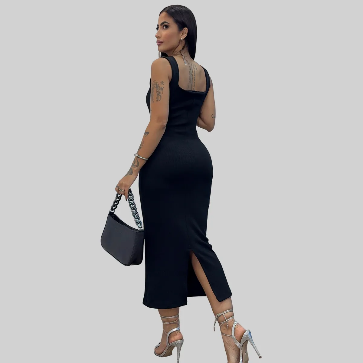 Vestido Longo Casual Festa Alça Grossa Fenda Moda Elegante
