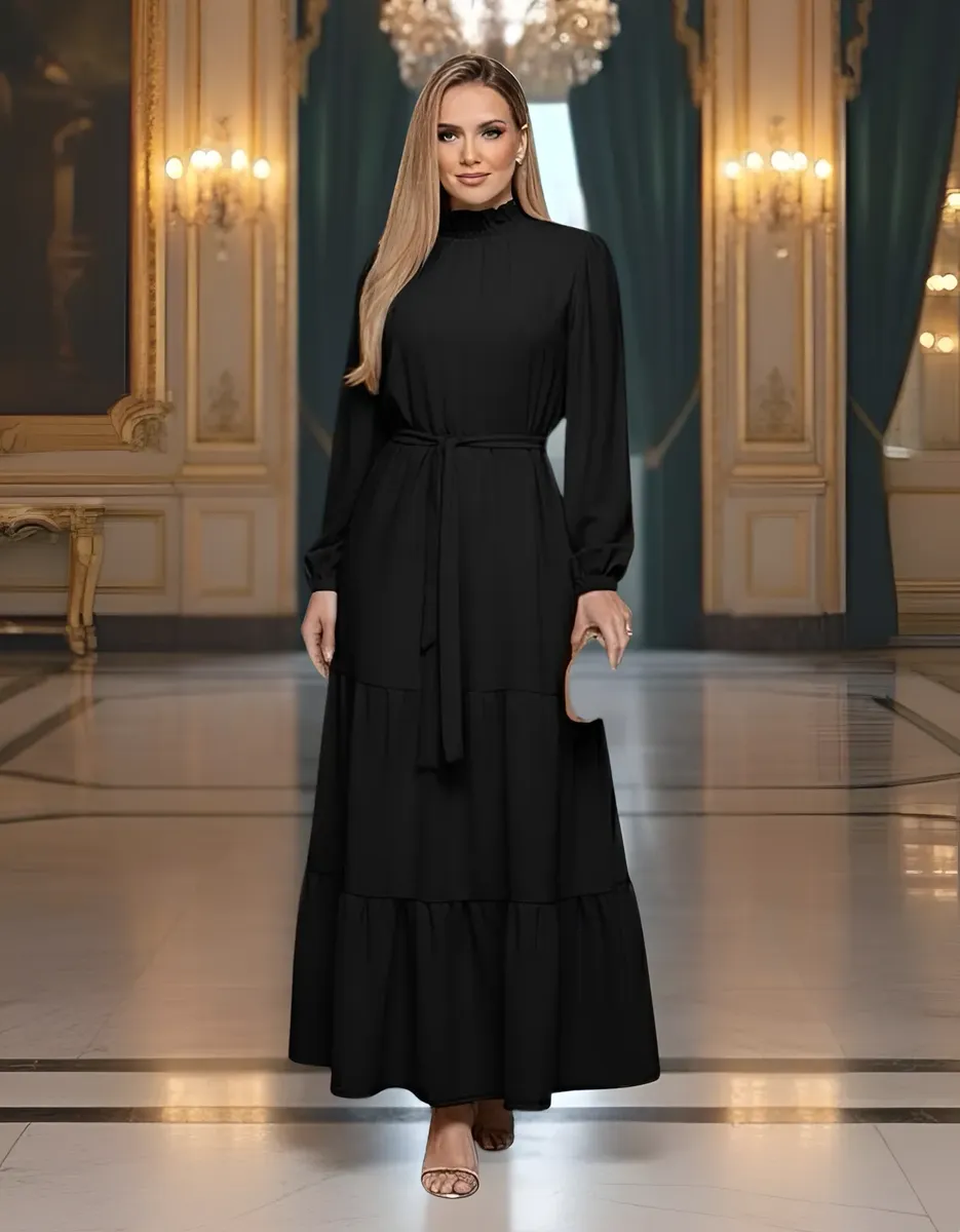 Vestido Longo Feminino Manga Longa Gola Alta Evangélico Luxo