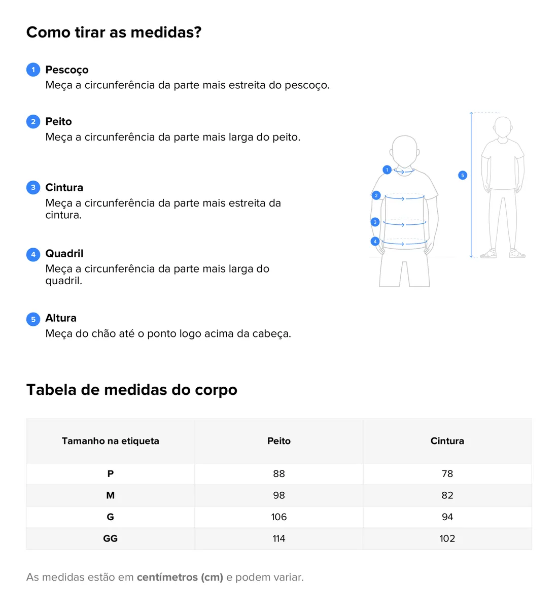 P – Busto: 88 cm / Cintura: 78 cm