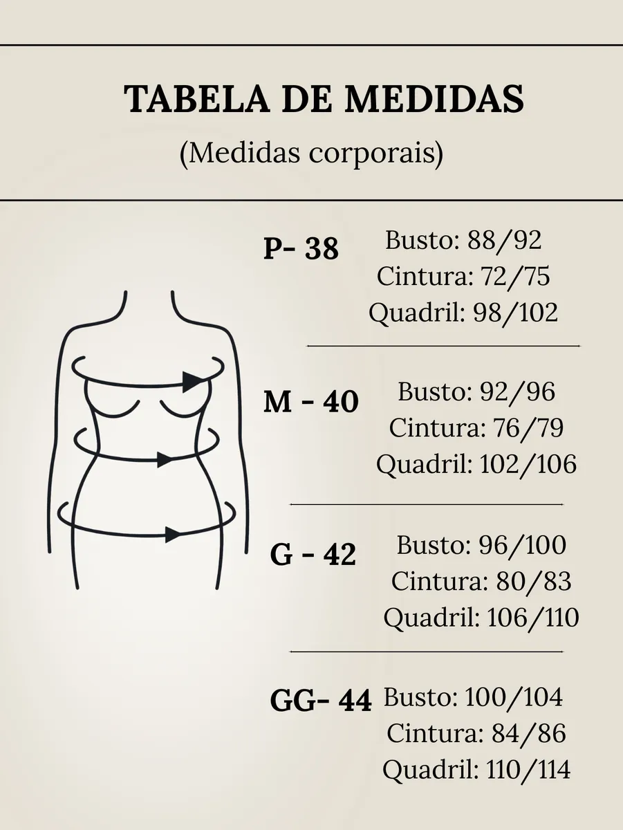 P (38) - Busto: 93 Cintura: 73 Quadril:102