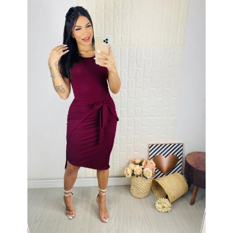Vestido Midi Detalhe Amarrar Manga Curta Moda Evangélica