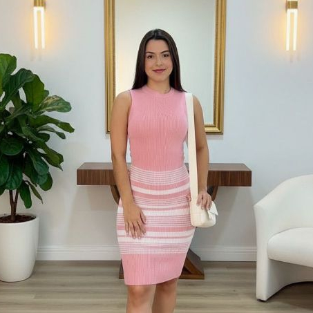 Vestido Midi Feminino Canelado sem Manga Tubinho Casual Básico Listrado de Tricot Tendência Elegante