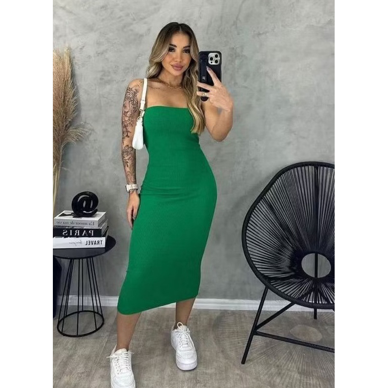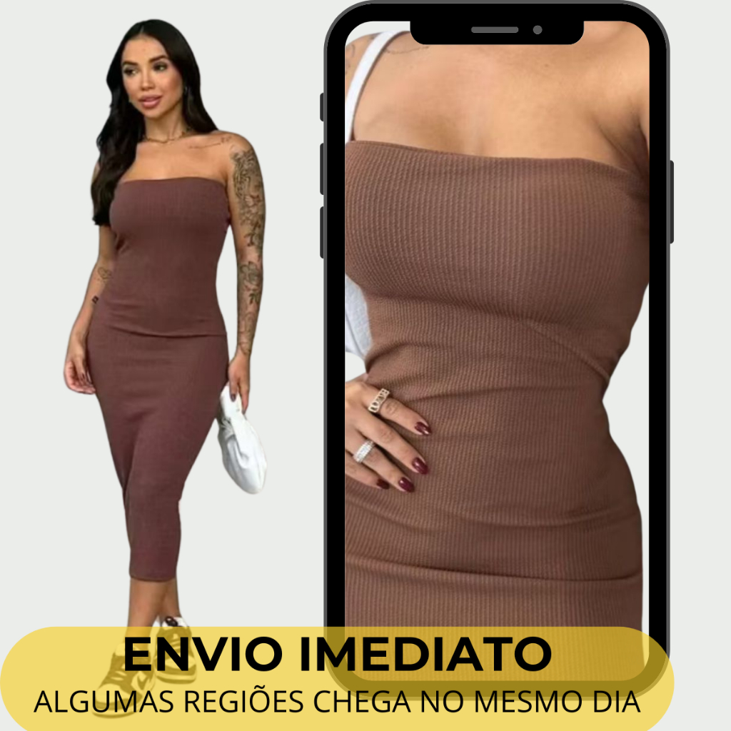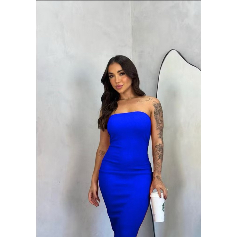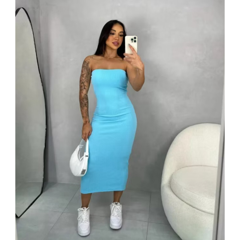 Vestido Midi Feminino Tomara que Caia Tendência Blogueira Conforto Estilo Moda Gestante