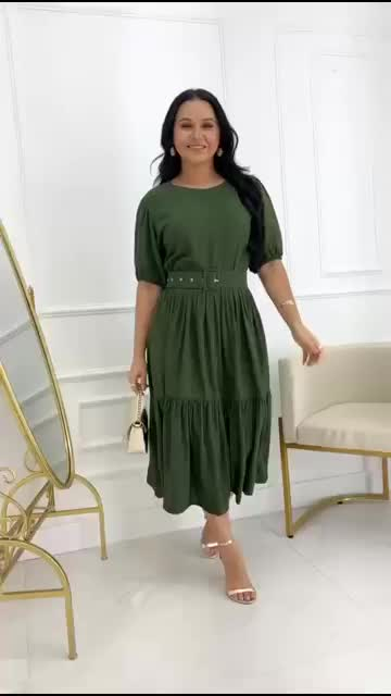VESTIDO MÍDI EM VISCOLINHO COM CINTO – ELEGANTE E CONFORTÁVEL