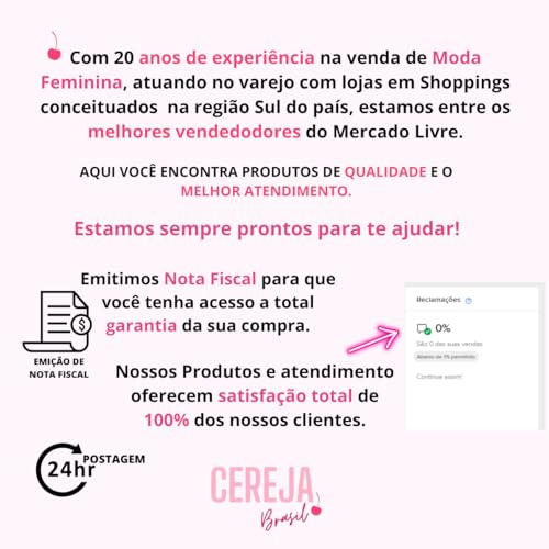 A Cereja Brasil e Guria do Sul, são marcas Gaúchas que atuam a mais de 20 anos no mercado, seguindo sempre as últimas tendências de moda feminina, priorizando sempre a qualidade e beleza de seus produtos. Nossas marcas são voltada para mulheres Empoderadas, antenadas a moda, que possuem gosto sofisticado sem deixar de lado o conforto e versatilidade das peças. Nossos produtos e Fornecedores são rigorosamente escolhidos, e as peças são confeccionados com Matéria Prima de Primeira qualidade. Trabalhamos sempre pensando em atender as suas mais altas expectativas. Nosso envio é imediato, em 24 hs após a sua compra. Todas as nossas fotos dos produtos são reais, tiradas pela marca com modelos próprias. Tenham cuidado com outros vendedores que possam ter copiado nossas fotos e modelos fazendo cópias de baixa qualidade oferecendo preços mais baixos. VESTIDO CANELADO RECORTE TRANSPASSADO Renove seu guarda-roupa com este vestido feminino em malha canelada, na charmosa cores em tom pastel, que une conforto e estilo em uma única peça. Modelagem justa que valoriza as curvas, com decote redondo e mangas curtas, garantindo um visual clean e sofisticado. A saia possui recorte transpassado com abertura frontal sutil, que proporciona movimento e um toque de sensualidade na medida certa. Faixa no mesmo tecido para amarração lateral, criando um efeito de laço charmoso que acintura e realça a silhueta. Confeccionado em Tecido Canelado Tamanho Unico 36 ao 42. Qualquer dúvida, basta enviar sua pergunta, estaremos sempre dispostos a responder e prestar a você o melhor atendimento.