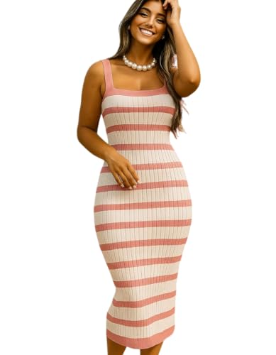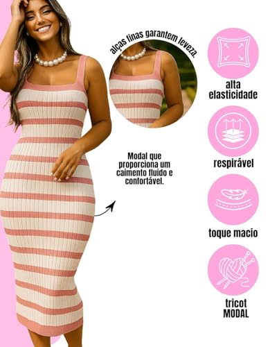 Vestido Tricot Feminino Midi Listrado Alça Casual Elegante Verão