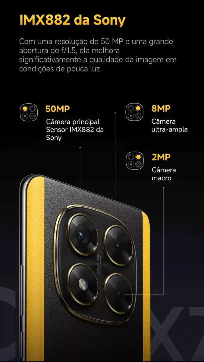 >Câmera Principal: 50 MP, f/1.5, 26mm, PDAF e OIS